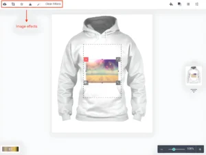 Barra de ferramentas à esquerda, onde você pode adicionar efeitos à sua imagem. Para ativar esta barra de ferramentas, clique em uma imagem e ela aparecerá na parte superior do editor de design.