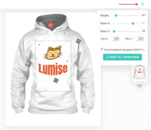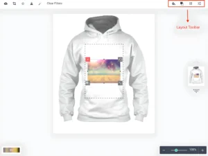 Há quatro opções na barra de ferramentas à direita que permitem personalizar a posição, a transformação e a cor da imagem. Para ativar a barra de ferramentas de layout, clique em uma imagem e ela aparecerá na parte superior do editor de design.