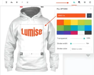 Existem quatro efeitos de texto no Lumise. Selecione um texto e escolha o ícone ” Efeito de Texto” para personalizá-lo.